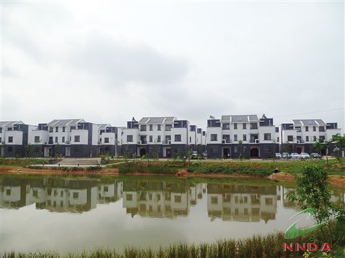 沿著寬敞的柏油路走進經(jīng)開區(qū)吳圩鎮(zhèn)壇白村茶柳坡生態(tài)綜合示范村,景色讓人眼前一亮。茶柳新村建設(shè)項目占地面積約54畝,共建59棟住宅,所有的住宅樓全部是庭院組團式布局的廣西壯族民居風格建筑。該示范村將建成集旅游、觀光、休閑及兒童主題樂園于一體的休閑基地。