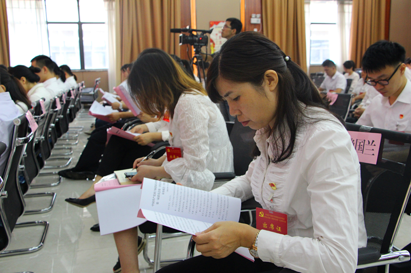 與會黨員們認真聽取工作報告2