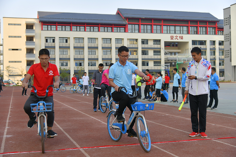 下午,雖然艷陽(yáng)高照,但是卻絲毫沒(méi)有影響參賽隊(duì)員們的熱情,賽場(chǎng)更是熱火朝天,加油聲此起彼伏,原來(lái),這是最受職工歡迎和參與率最高的比賽環(huán)節(jié)——趣味類(lèi)運(yùn)動(dòng)競(jìng)技。今年的趣味競(jìng)技設(shè)置了龜兔賽跑、快樂(lè)運(yùn)球、同舟共濟(jì)、滾鐵環(huán)、激情袋鼠、定點(diǎn)投籃和慢騎自行車(chē)等項(xiàng)目,既有團(tuán)體比賽,又有個(gè)人積分賽,大家結(jié)合自身的實(shí)際和特長(zhǎng)選報(bào)項(xiàng)目,全身心投入比賽。為了取得好成績(jī),午飯后,很多運(yùn)動(dòng)員放棄了休息,都在操場(chǎng)上反復(fù)練習(xí),不斷總結(jié)經(jīng)驗(yàn)。