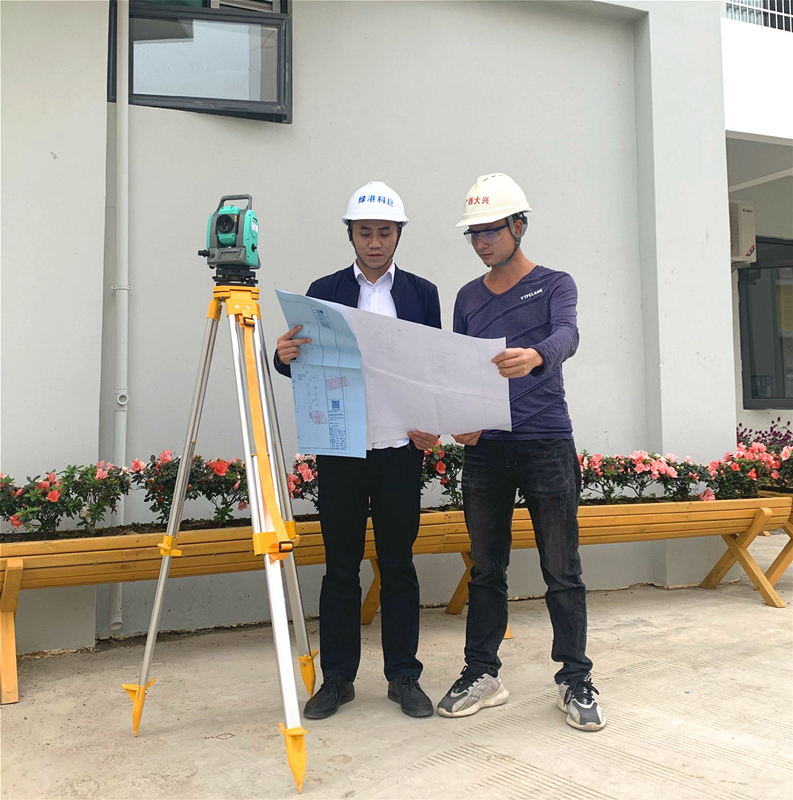 項(xiàng)目建設(shè)初期,受項(xiàng)目場地限制只能安排一臺推土機(jī)、挖掘機(jī)在項(xiàng)目地塊上推出一條道路,在凹凸不平的菜地之間回填用來建設(shè)項(xiàng)目教學(xué)樓以及附屬工程、設(shè)施。面對惡劣環(huán)境,韋密白天指導(dǎo)施工單位管理人員帶著工人們平整場地,搭建臨舍,晚上與項(xiàng)目管理人員共同研究施工計劃、商量趕工方案,安排任務(wù)分工,齊心協(xié)力、不等不靠,全力奮戰(zhàn),沒有電就用現(xiàn)場汽油機(jī)發(fā)電,沒有水就用市政灑水車供水,一步步攻堅克難,確保項(xiàng)目建設(shè)如期推進(jìn)。